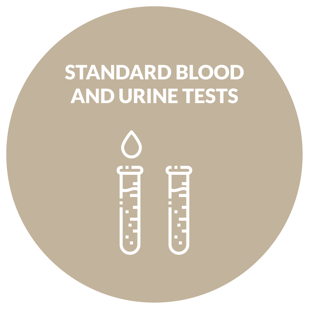 Standard Blood and urine tests: